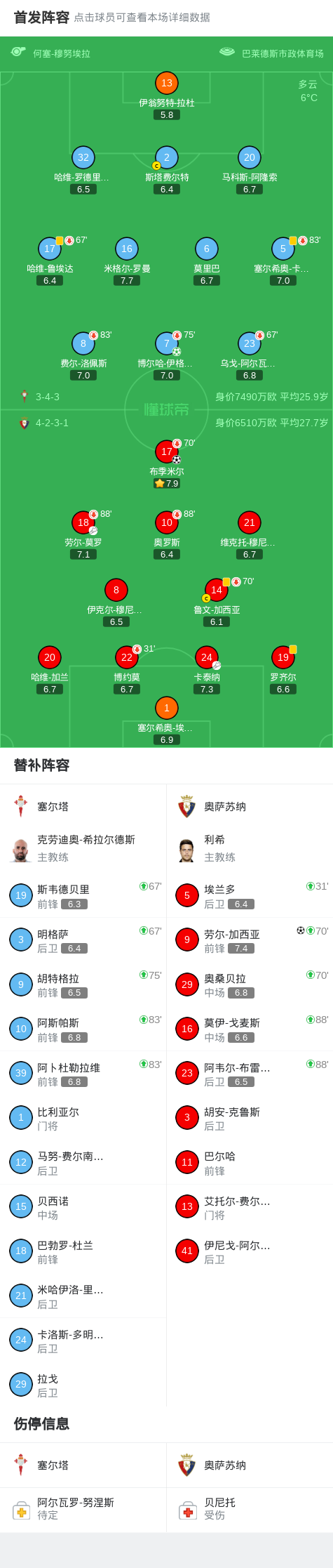 北京时间2月7日西班牙足球甲级联赛 联赛 第23轮,塞尔塔主场对阵奥萨苏纳。塞尔塔博尔哈-伊格莱西亚斯破门。奥萨苏纳布季米尔破门,劳尔-加西亚破门。最终比分塞尔塔 1–2 奥萨苏纳。