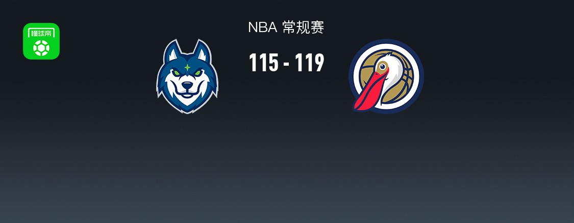 第四节森林狼海兰德拿下7分,鹈鹕萨迪克-贝拿下14分,最终森林狼115-119不敌鹈鹕