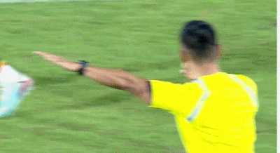 第35分钟,邝兆镭倒在禁区,裁判没有理会