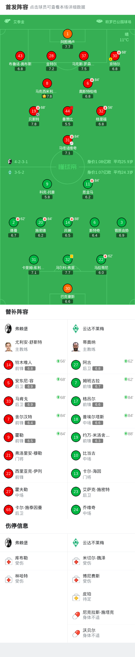 北京时间2月7日德国足球顶级联赛 联赛 第21轮,弗赖堡主场对阵云达不莱梅。弗赖堡贝斯特破门。最终比分弗赖堡 1–0 云达不莱梅。