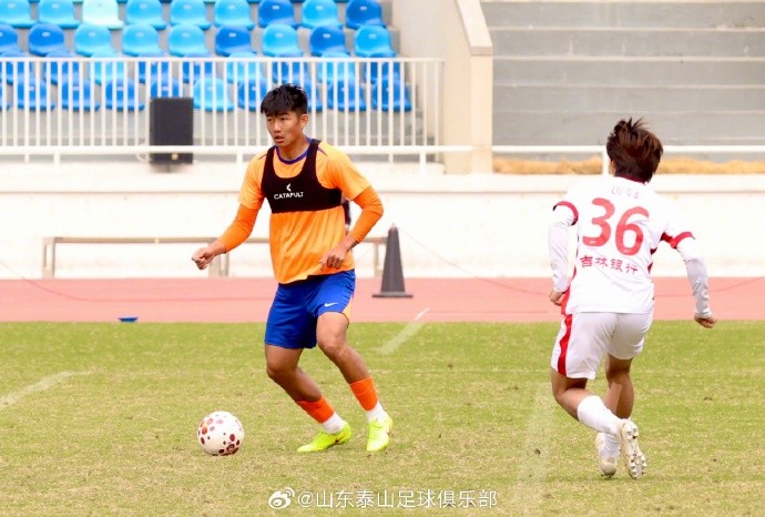今天上午11点,山东泰山队与长春亚泰队在广州进行冬训热身赛。