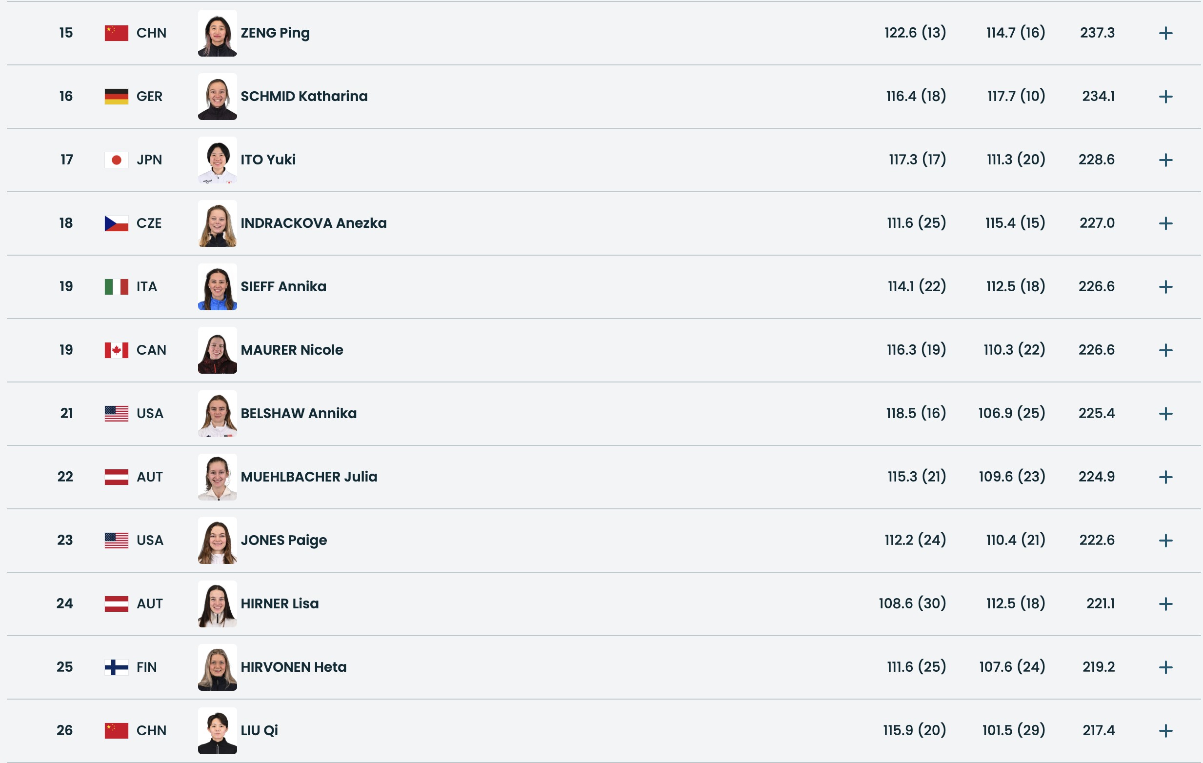 刘奇则是在决赛轮得到101.5分,总分217.4,最终排名第26。