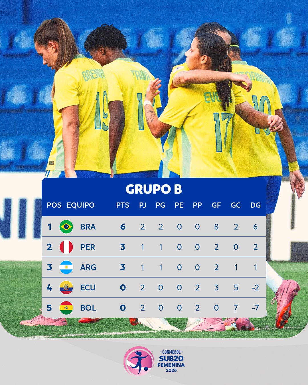 北京时间2月8日早5点,2026年南美U20女足锦标赛第一阶段小组赛B组第二轮,巴西队5-0横扫玻利维亚队,收获2连胜。