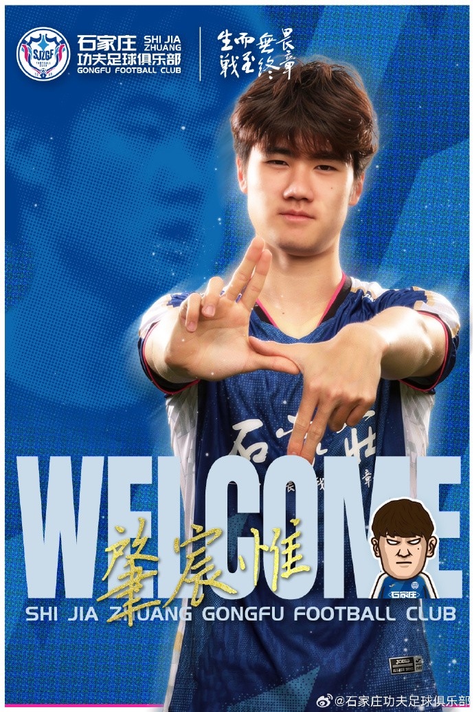 欢迎肇宸惟加入石家庄功夫大家庭!期待他能快速融入球队战术体系,将青春力量注入球队,与队友携手并肩,不负热爱、不负期待,为石家庄这座城市书写更多绿茵荣光。