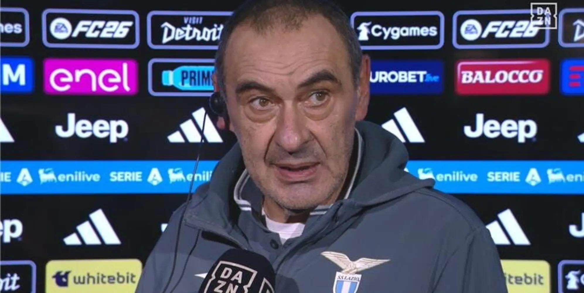 北京时间2月9日,在意甲第24轮的比赛中,拉齐奥在一度两球领先的情况下最终在客场被尤文图斯2-2绝平,赛后蓝鹰主帅萨里接受了DAZN的采访。