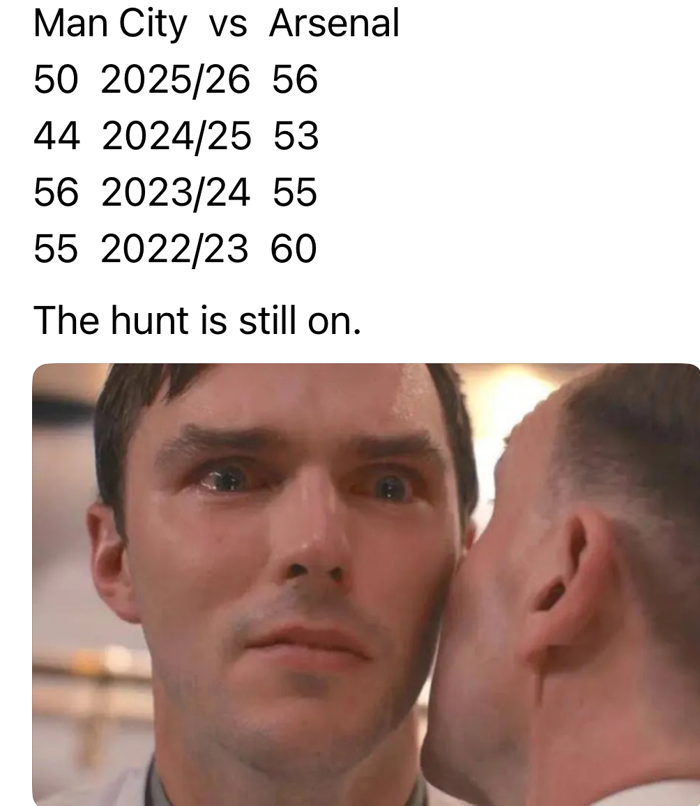 在阿森纳和曼城的冠军争夺战中,25轮过后,阿森纳在22/23和24/25赛季都领先过曼城,所以,现在还不是掉以轻心的时候!