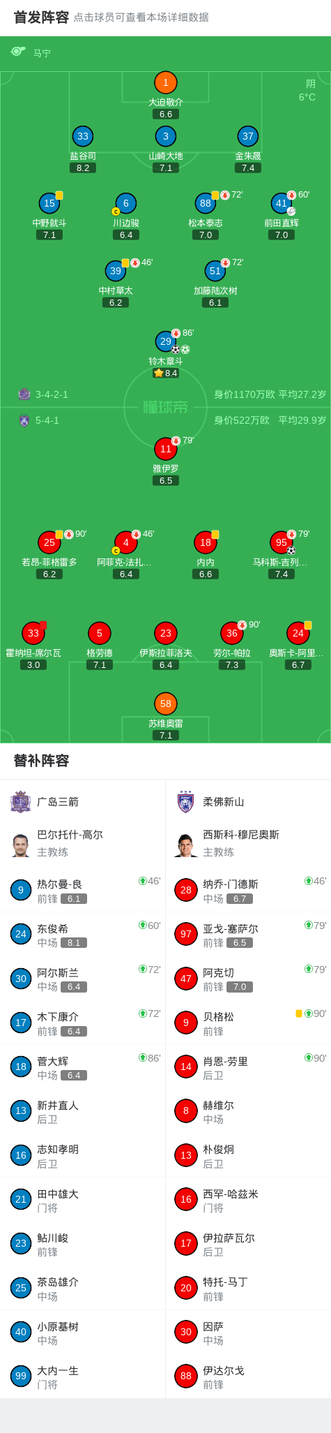 北京时间2月10日亚足联冠军精英联赛 联赛阶段 第7轮,广岛三箭对阵柔佛新山。广岛三箭铃木章斗梅开二度。柔佛新山马科斯-吉列尔梅破门。最终比分广岛三箭 2–1 柔佛新山。