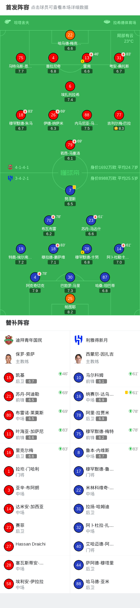 北京时间2月10日亚足联冠军精英联赛 联赛阶段 第7轮,迪拜青年国民对阵利雅得新月。最终比分迪拜青年国民 0–0 利雅得新月。 点击查看本场比赛详细数据>> 点击查看亚冠精英完整积分榜>> 球队阵容 技术统计 文章导航 切尔西本赛季英超三场周中赛未尝一胜,包括首回合不敌利兹联 马特乌斯谈卡尔踩单车失败:梅西在17岁的时候也并非事事顺利