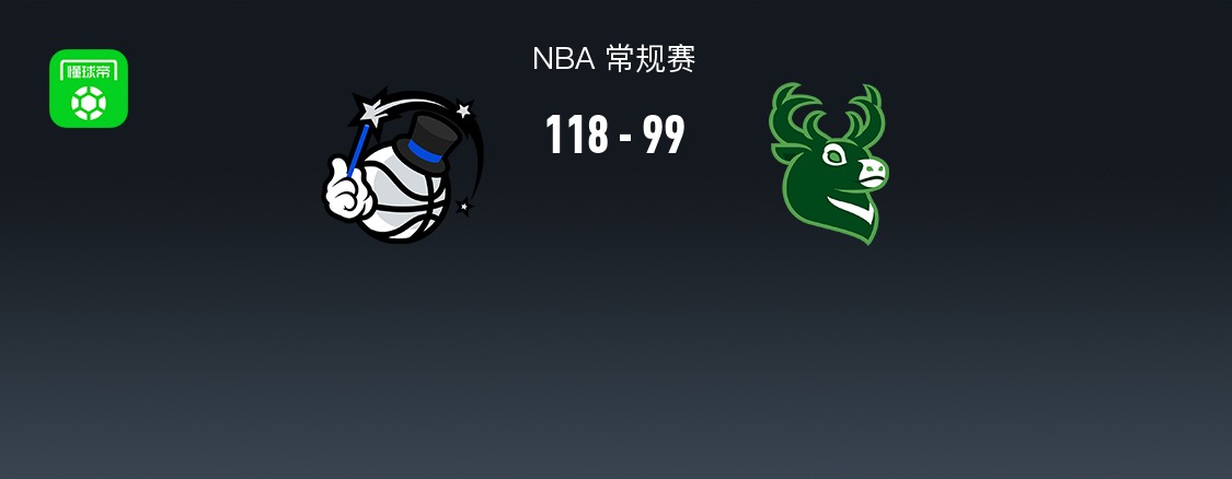 第四节魔术布莱克拿下9分,雄鹿小凯文-波特拿下6分,最终魔术118-99战胜雄鹿
