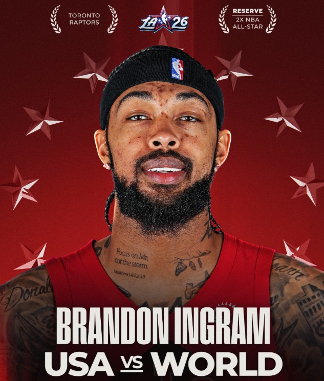 NBA官方表示,总裁亚当-萧华宣布,多伦多猛龙队前锋布兰登-英格拉姆将代替受伤的金州勇士队后卫斯蒂芬-库里代表美国队参加2026年NBA全明星赛。