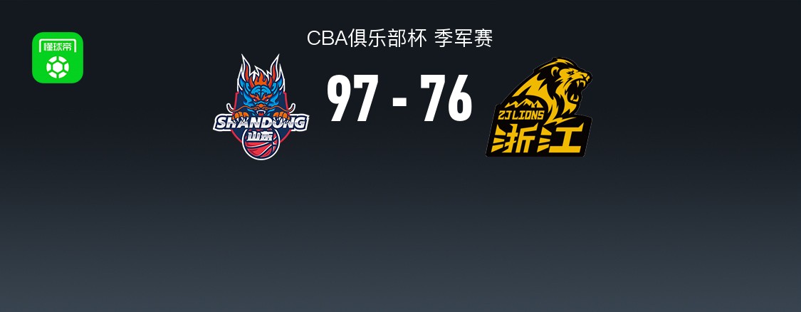第四节山东张旭拿下11分,广厦续峻玮拿下6分,最终山东97-76战胜广厦