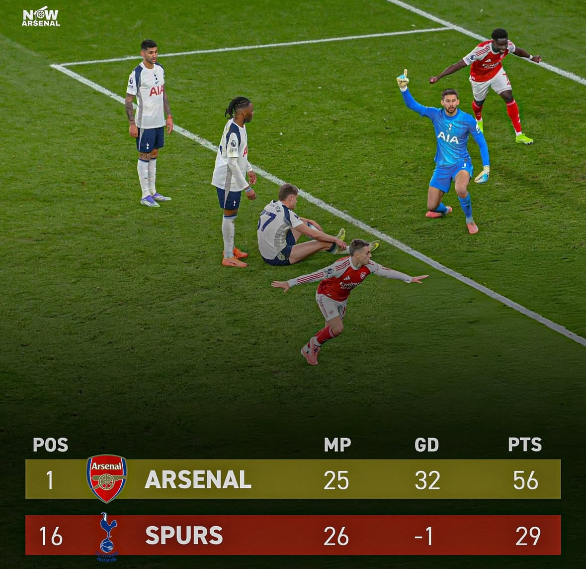 输掉了比赛的热刺,距离榜首的阿森纳差距来到了27分,净胜球差距更是多到33个,这也是最近十年英超两队最大的差距。 热刺最近低迷的状态,确实离老领居阿森纳的水平越来越远了…… 文章导航 北伦敦最强堡垒!阿森纳在酋长球场输掉过49场英超 【球员丑照】——灵魂画手:武汉三镇2025