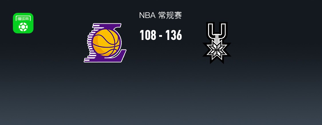 第四节湖人德鲁-蒂米拿下9分,马刺奥利尼克拿下8分,最终湖人108-136不敌马刺