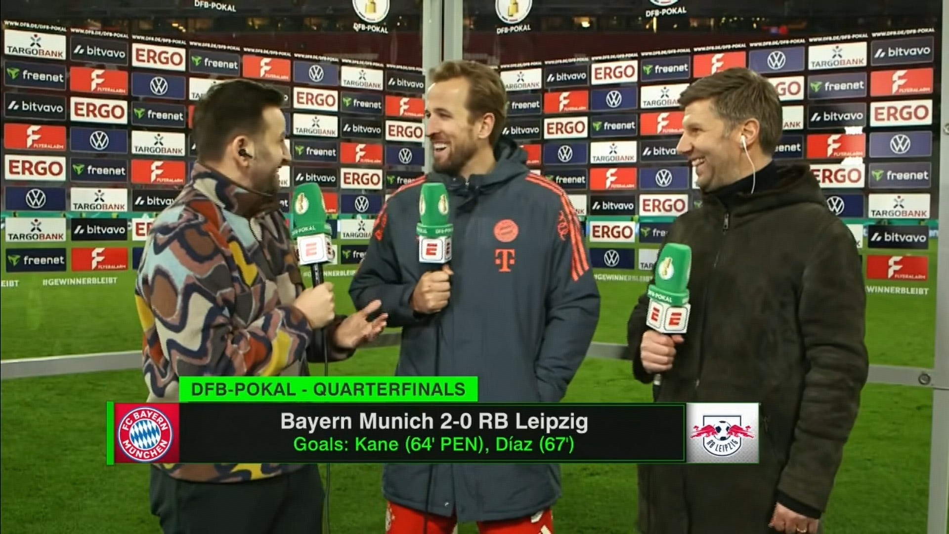 在德国杯1/4决赛打进一球帮助拜仁慕尼黑主场2-0击败莱比锡之后,凯恩接受了来自ESPN的采访。