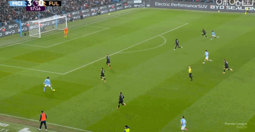 第39分钟,福登分球,哈兰德低射破门,曼城3-0!