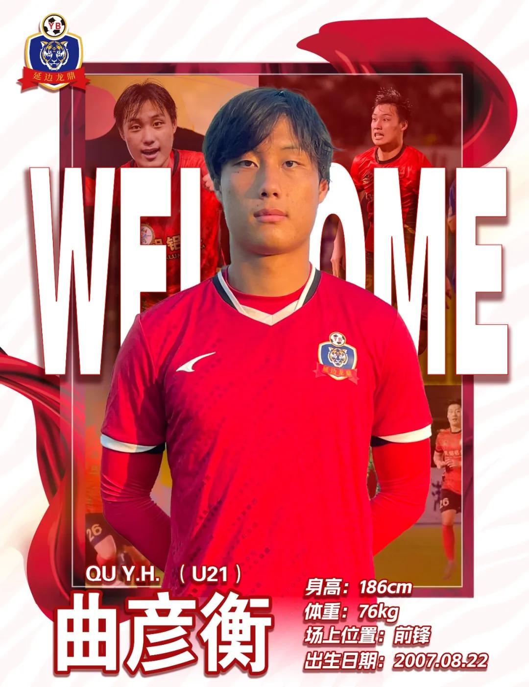 欢迎曲彦衡租借加盟延边龙鼎足球俱乐部,期待这名年轻小将在前场的精彩表现,希望他能够锐意进取、奋勇拼搏,为球队贡献更多青春力量。美丽延边欢迎你!
