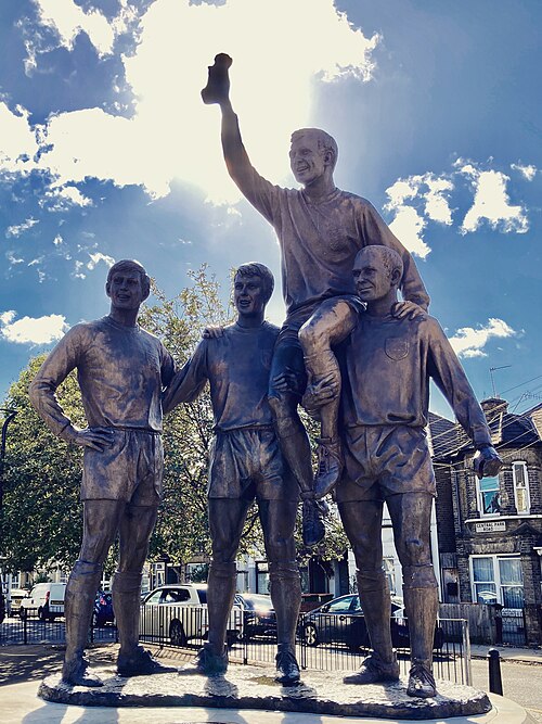 由于穆尔当时效力于西汉姆联队,2003年,他举杯的这一瞬间也被做成了雕像,矗立在了西汉姆联老主场:厄普顿公园球场附近。如今,厄普顿公园球场已经被拆除,西汉姆联的主场也换成了更大的伦敦体育场,但这座雕像还立在原处,纪念着英格兰迎来“足球回家”的光荣。