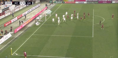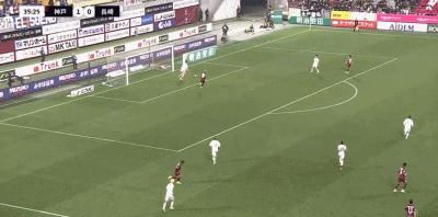 第25分钟,世界波,酒井高德凌空斩破门,神户胜利船1-0领先