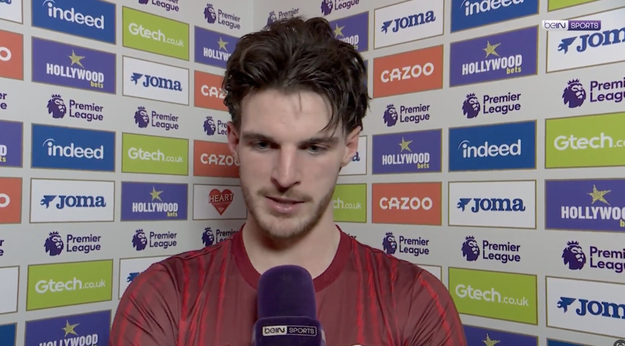 英超第26轮,阿森纳客场1-1战平布伦特福德,赛后,阿森纳中场赖斯接受了拜因体育的采访。