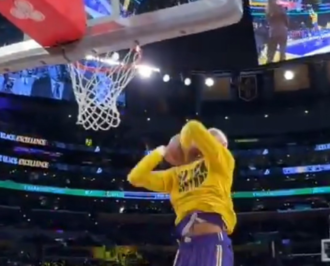 北京时间2月13日,湖人主场对阵独行侠,在赛前热身时出现了有意思的一幕,詹姆斯在场边进行了一段魔性舞蹈后助攻海斯空接扣篮得手。