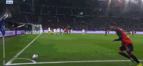 第40分钟,门德斯传球,内维斯抢点射门没有踢正部位