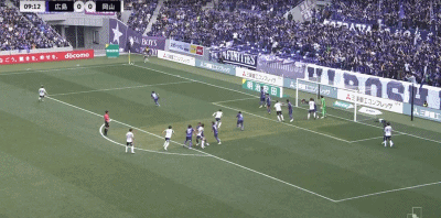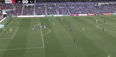第10分钟,江坂任抽射破门,冈山绿雉1-0领先广岛三箭