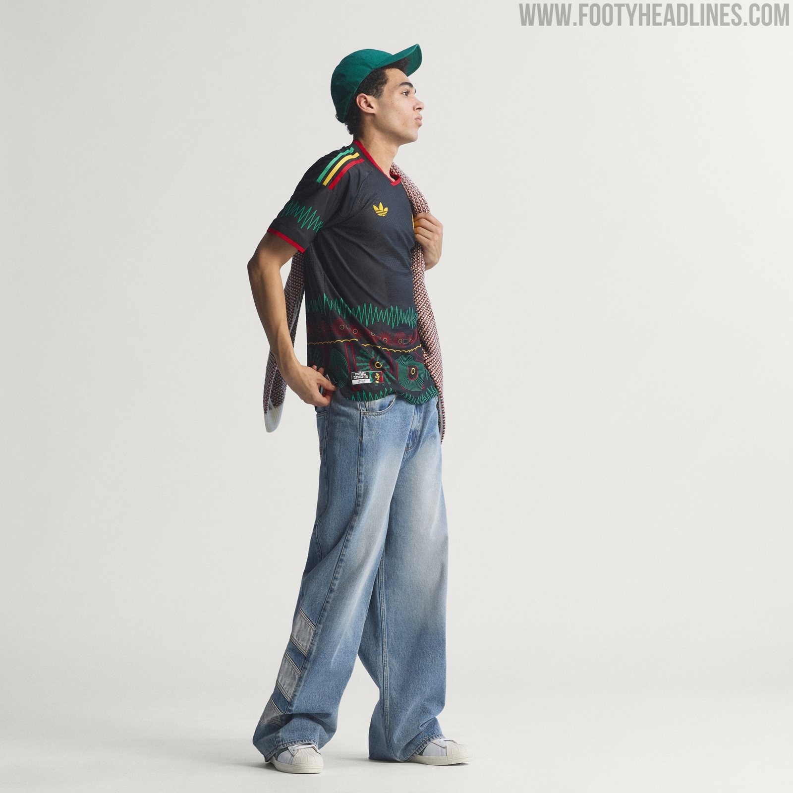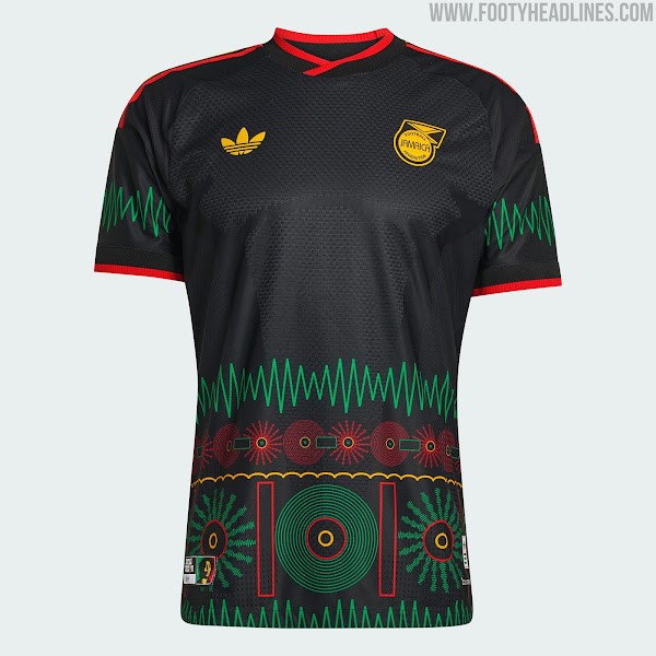 客场球衣则以黑色为基底,融入富有本土特色的牙买加传统艺术图案与装饰纹样,在现代剪裁下展现浓厚文化底蕴。与阿迪达斯2026系列其他客场球衣一致,新款牙买加客场战袍采用经典三叶草(Trefoil)标识,而非现行的Performance Logo,强化复古与文化表达。