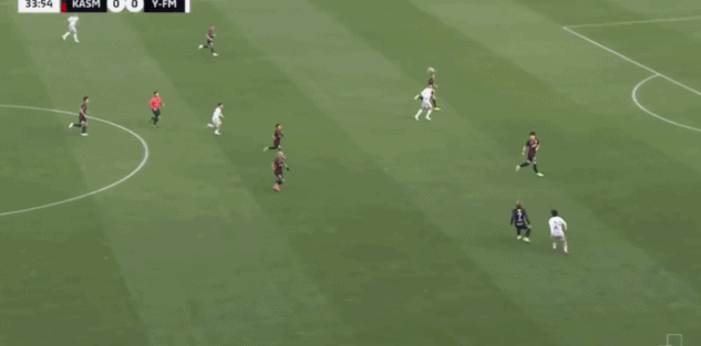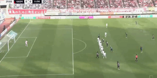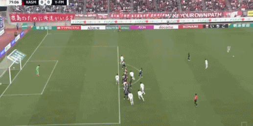 第26分钟,鹿岛鹿角开出定位球,知念庆俯身头球顶偏