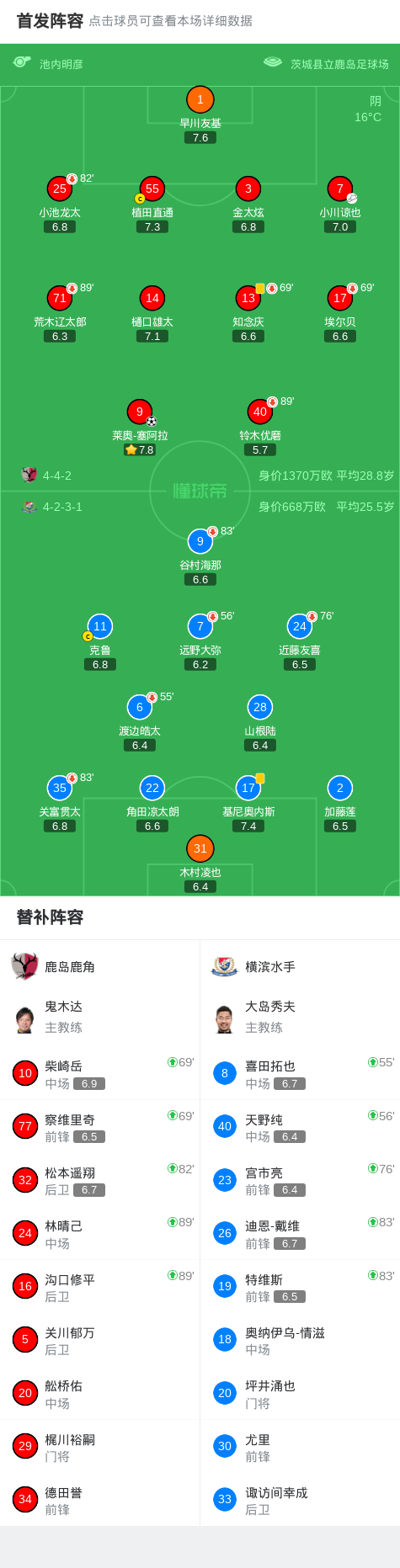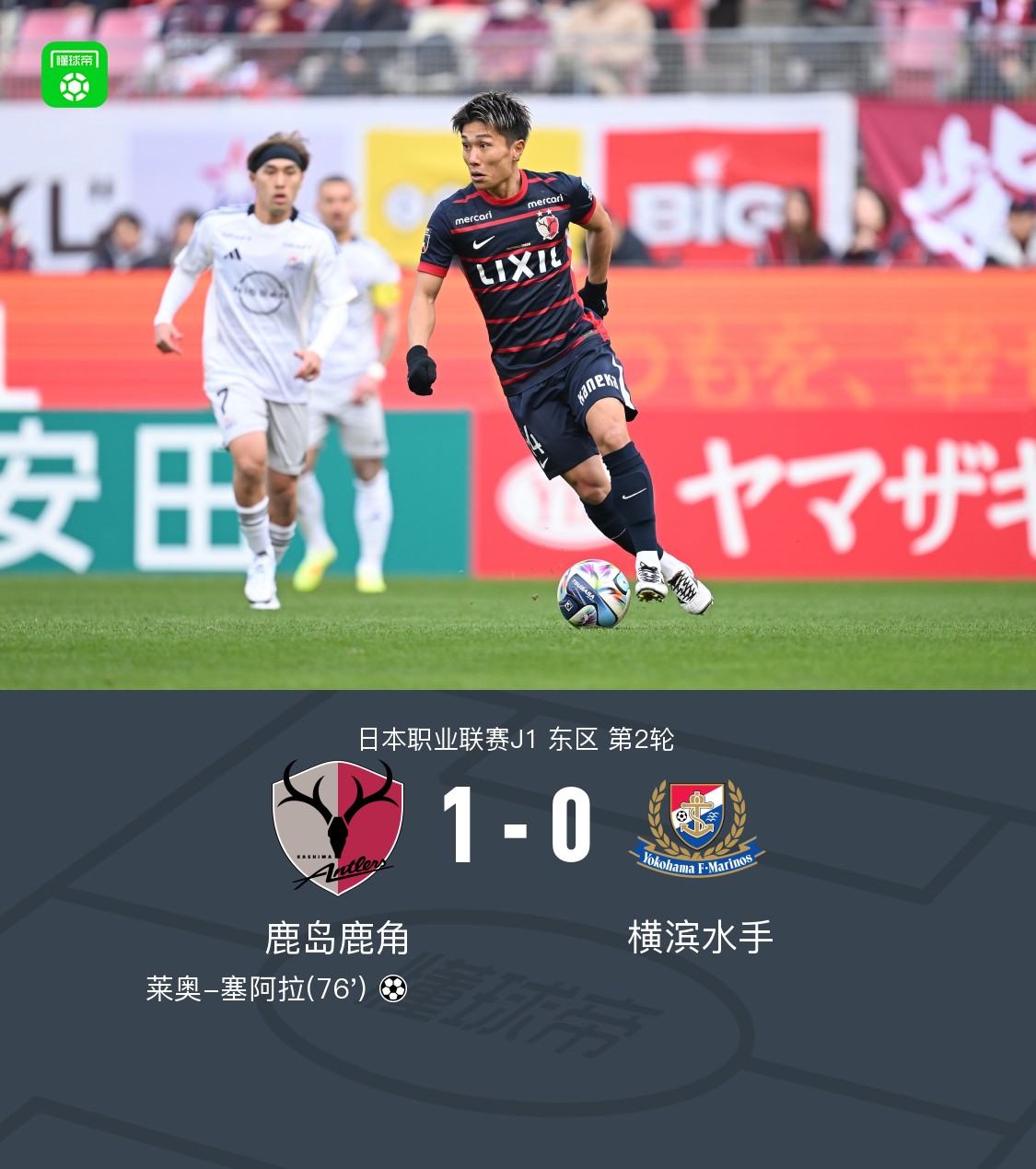 北京时间2月14日,日本职业联赛J1东区第2轮,鹿岛鹿角主场对阵横滨水手。比赛中,莱奥-塞阿拉制胜,迪恩-戴维失良机。最终,鹿岛鹿角1-0击败横滨水手。