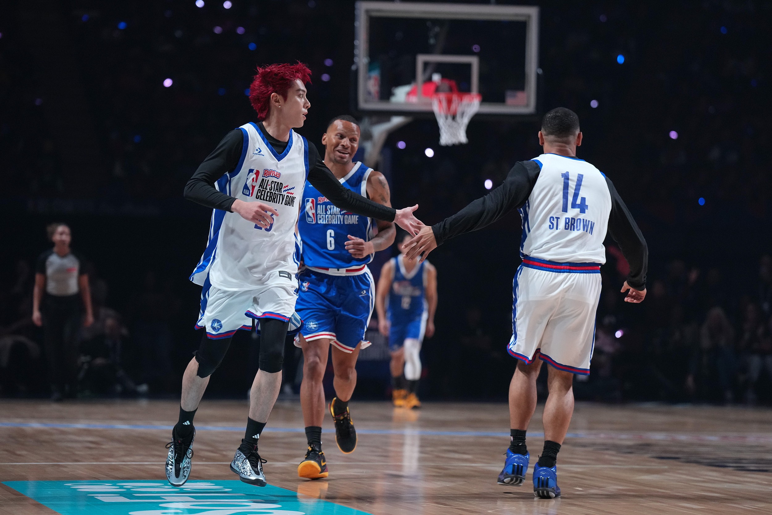本场比赛出场的明星有中国艺人王鹤棣、前NBA球员林书豪、CBA球员法尔、名记Shams、巴西名宿卡福、演员刘思慕等。