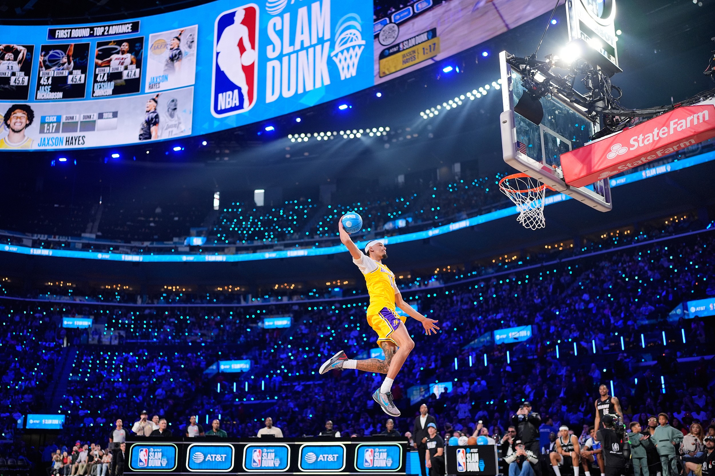 本届全明星扣篮大赛在“拉胯”方面可谓贡献了不少名场面,预赛海耶斯“下快攻”、理查德森险些受伤在地上躺平。