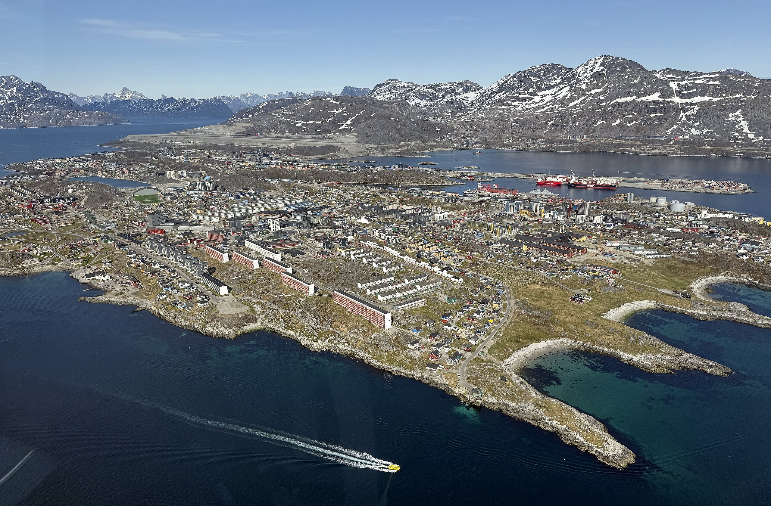 格陵兰岛的首府努克位于北纬64°11’,是世界上最北端的首府,人口20113人,是格陵兰岛上人口最多的城市。受墨西哥湾暖流的影响,努克冬季平均气温-8℃~-5℃,夏季平均气温5℃~7℃,历史最高气温达到过26.3℃。