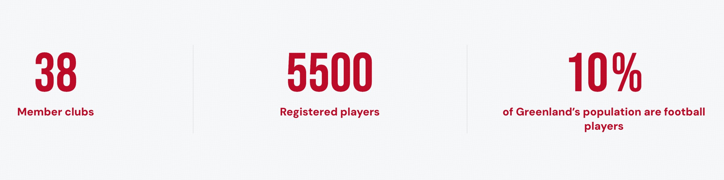 格陵兰足协管辖着格陵兰岛的男足代表队、女足代表队、男足U19代表队以及男女足的五人制足球队。格陵兰岛上有38家足球俱乐部,约5500名注册运动员,格陵兰足协官网上写着:“格陵兰岛10%的人口是足球运动员”。