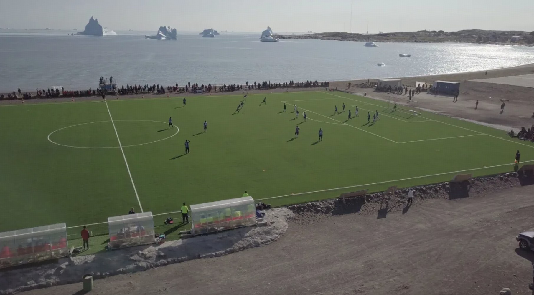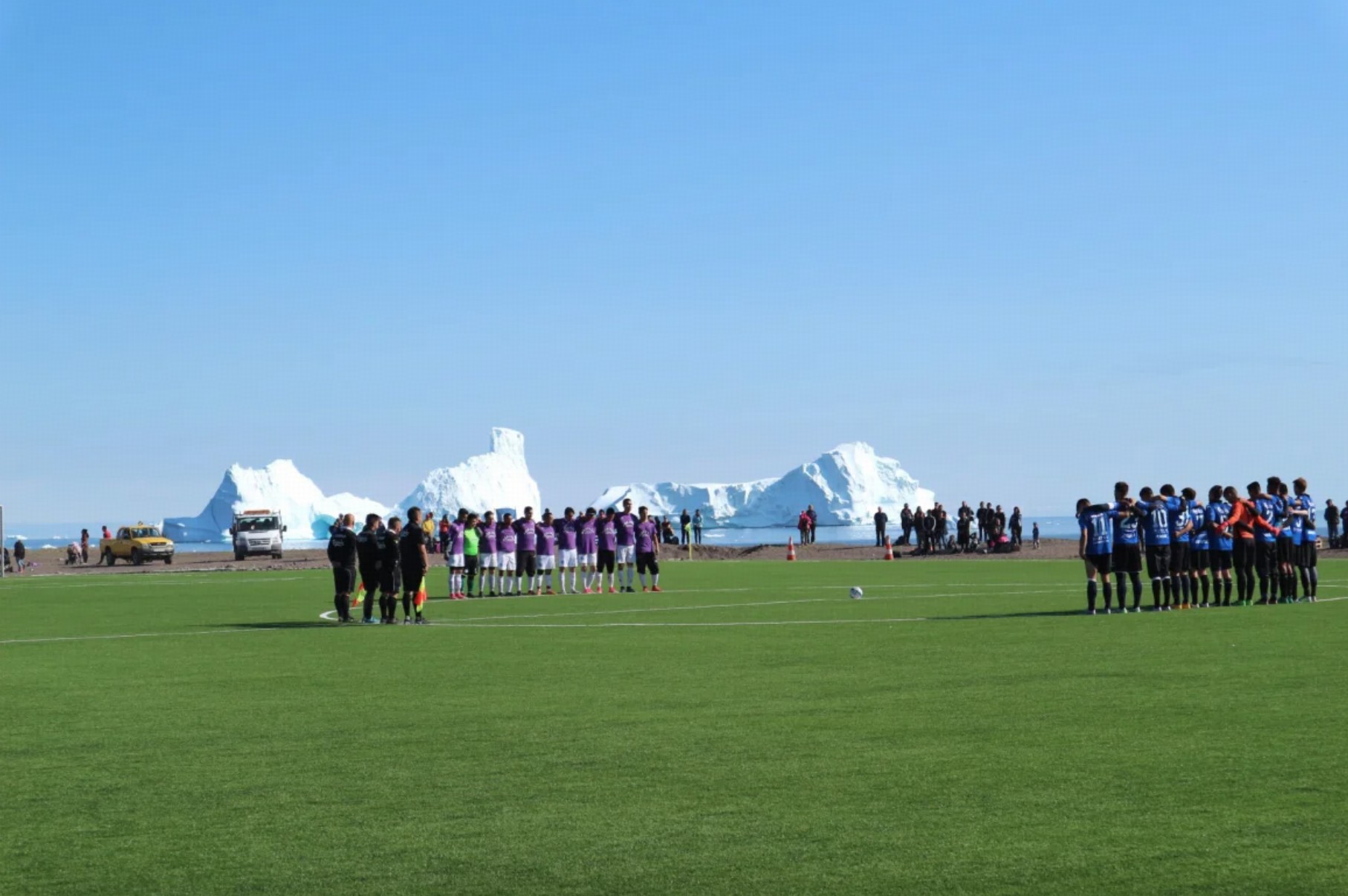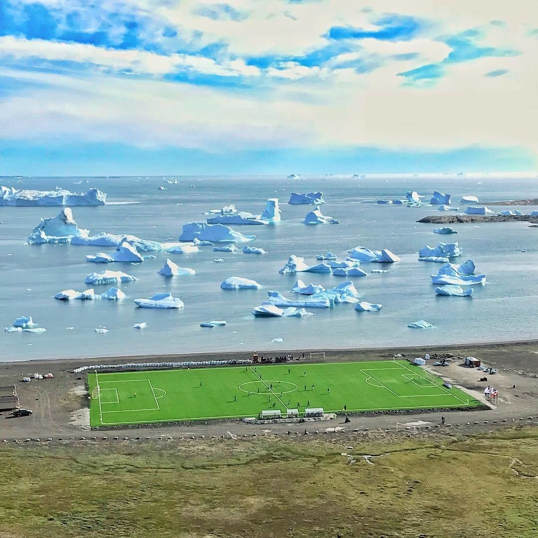 在2016年之前,格陵兰岛的足球比赛都是在沙地和岩石球场上进行。在丹麦足协的支持下,格陵兰岛上建起了多座人工草坪球场,在这里进行比赛时,远处还可以瞥见冰山和鲸鱼,这是独属于格陵兰岛的足球风光。