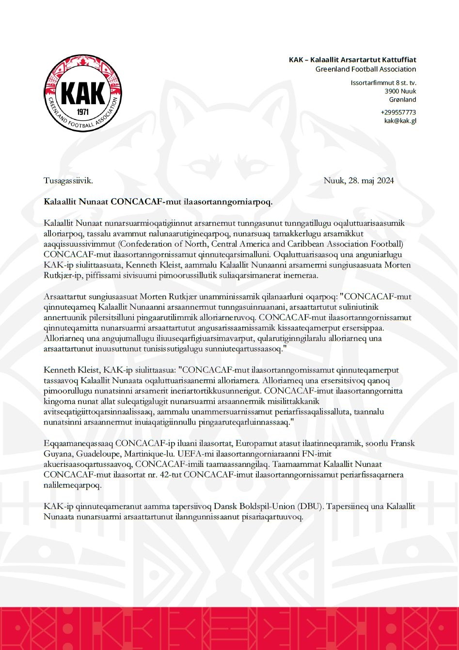 格陵兰岛足协曾希望加入欧足联,但在希望破灭后,他们尝试加入中北美足联。2024年5月,格陵兰岛正式向中北美足联递交申请,但一年后,他们的申请遭到拒绝。