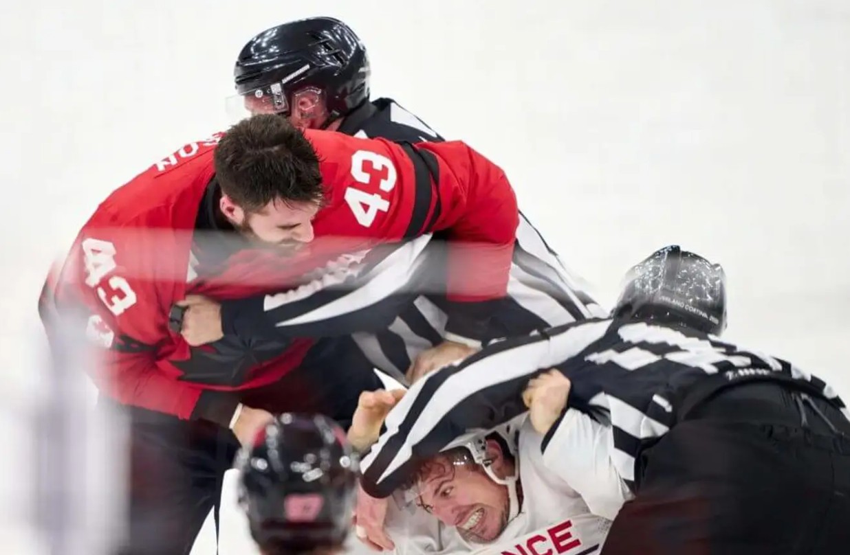 那发生在2025年2月15日的蒙特利尔,在“四国对抗赛”一场小组赛开场的前9秒内,加拿大队的布兰登-哈格尔、萨姆-贝内特和科尔顿-帕拉伊科,依次与美国队的马修-特卡丘克、布雷迪-特卡丘克和J.T.米勒发生斗殴,瞬间点燃网络。