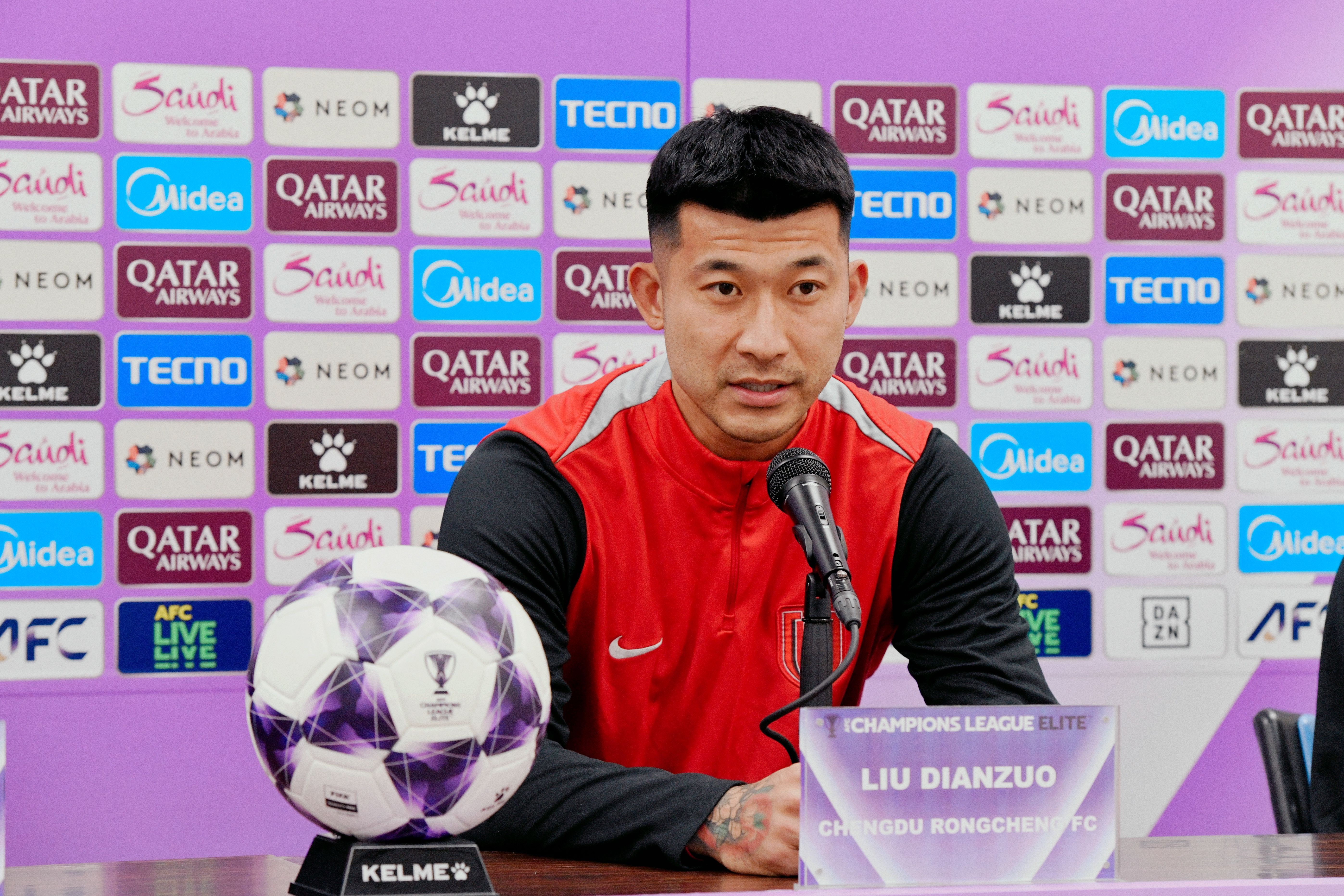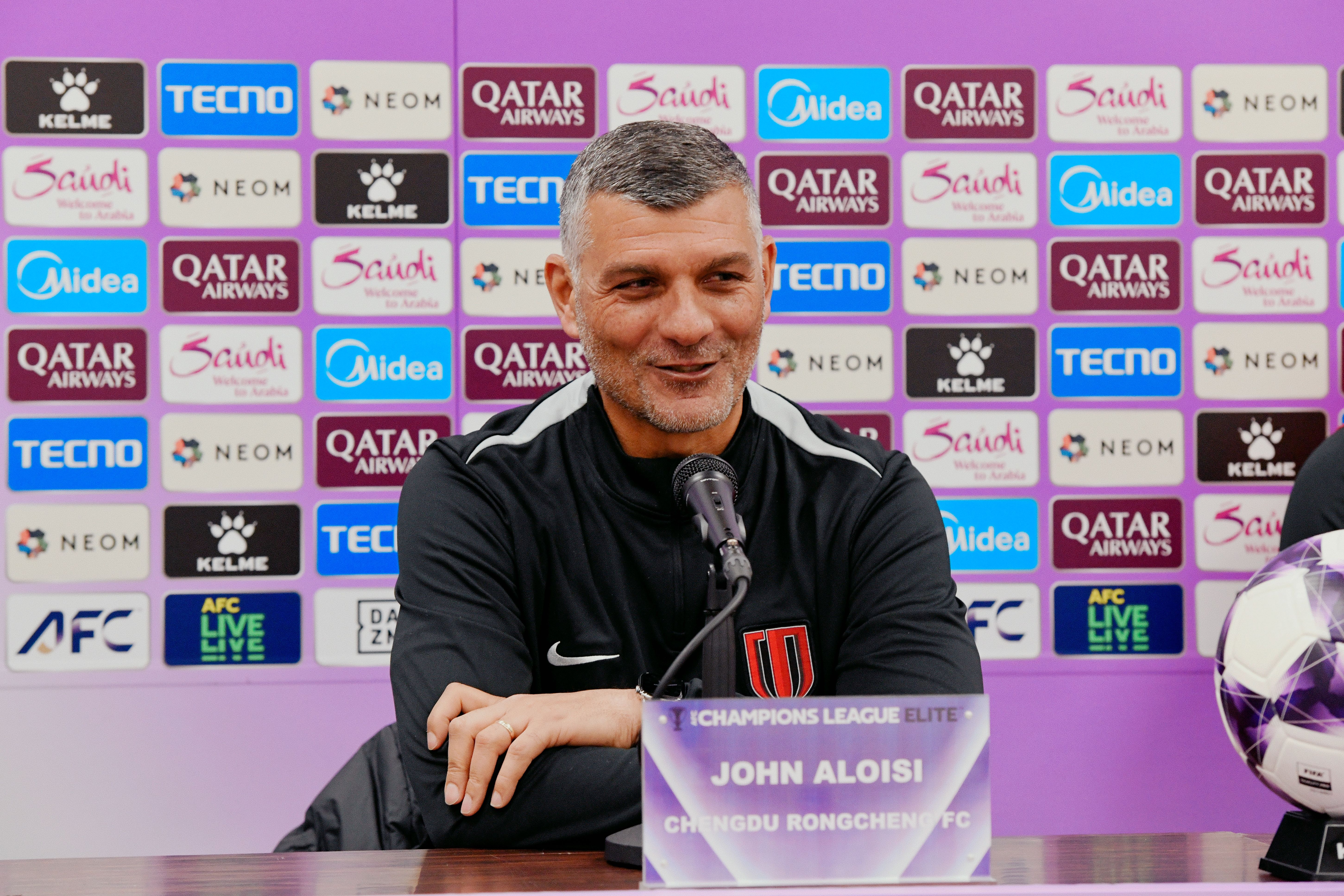 #ForBetterCity# #亚冠联赛# #町田泽维亚vs成都蓉城# 2月16日下午,成都蓉城队主教练约翰·阿洛伊西和球员刘殿座出席了赛前新闻发布会。在介绍本场比赛的备战情况时,约翰表示: