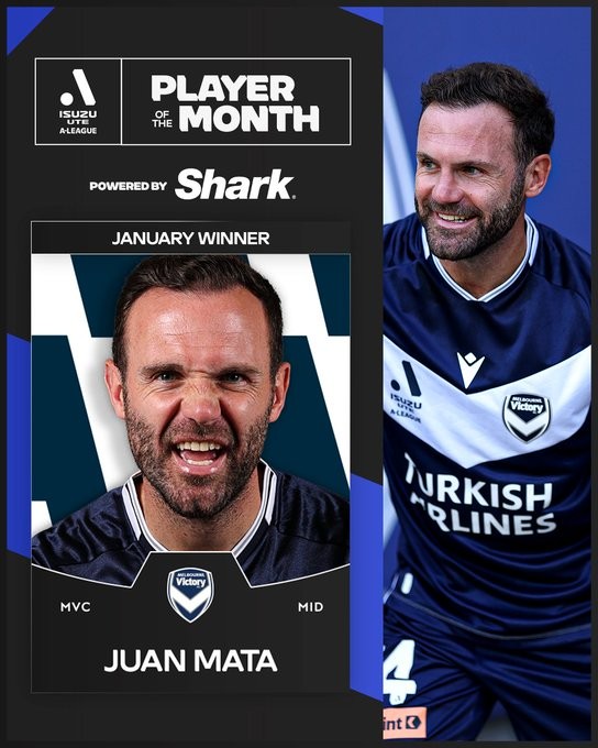 在1月,墨尔本胜利的战绩为2胜2负,马塔在这4场比赛中均出场,他在对阵珀斯光荣的比赛中贡献2次助攻,对阵悉尼的比赛中上演助攻帽子戏法。凭借出色的发挥,马塔成功当选澳超1月最佳球员。