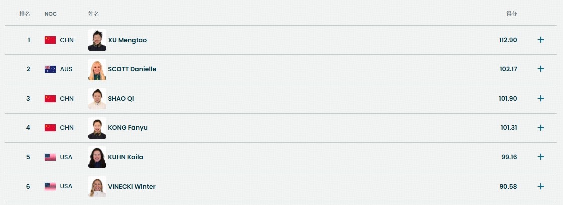 邵琪101.90获得银牌,孔凡钰101.31获得第四,徐梦桃成为第一位在该项目实现冬奥两连冠的运动员。