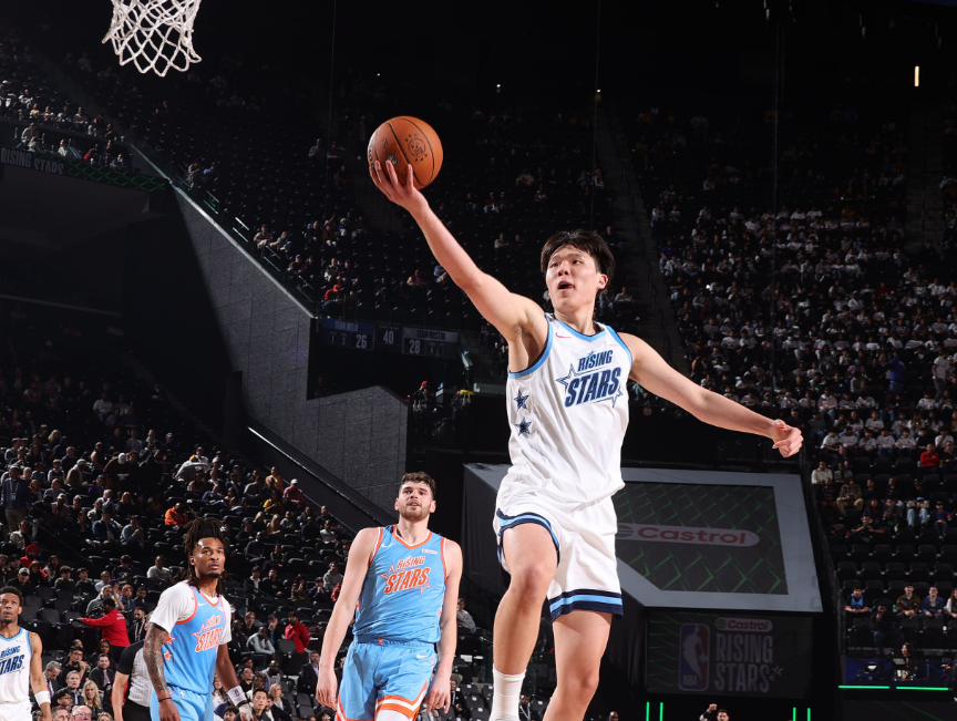 杨瀚森在新秀挑战赛中出场8分钟,5投4中拿到10分2板。