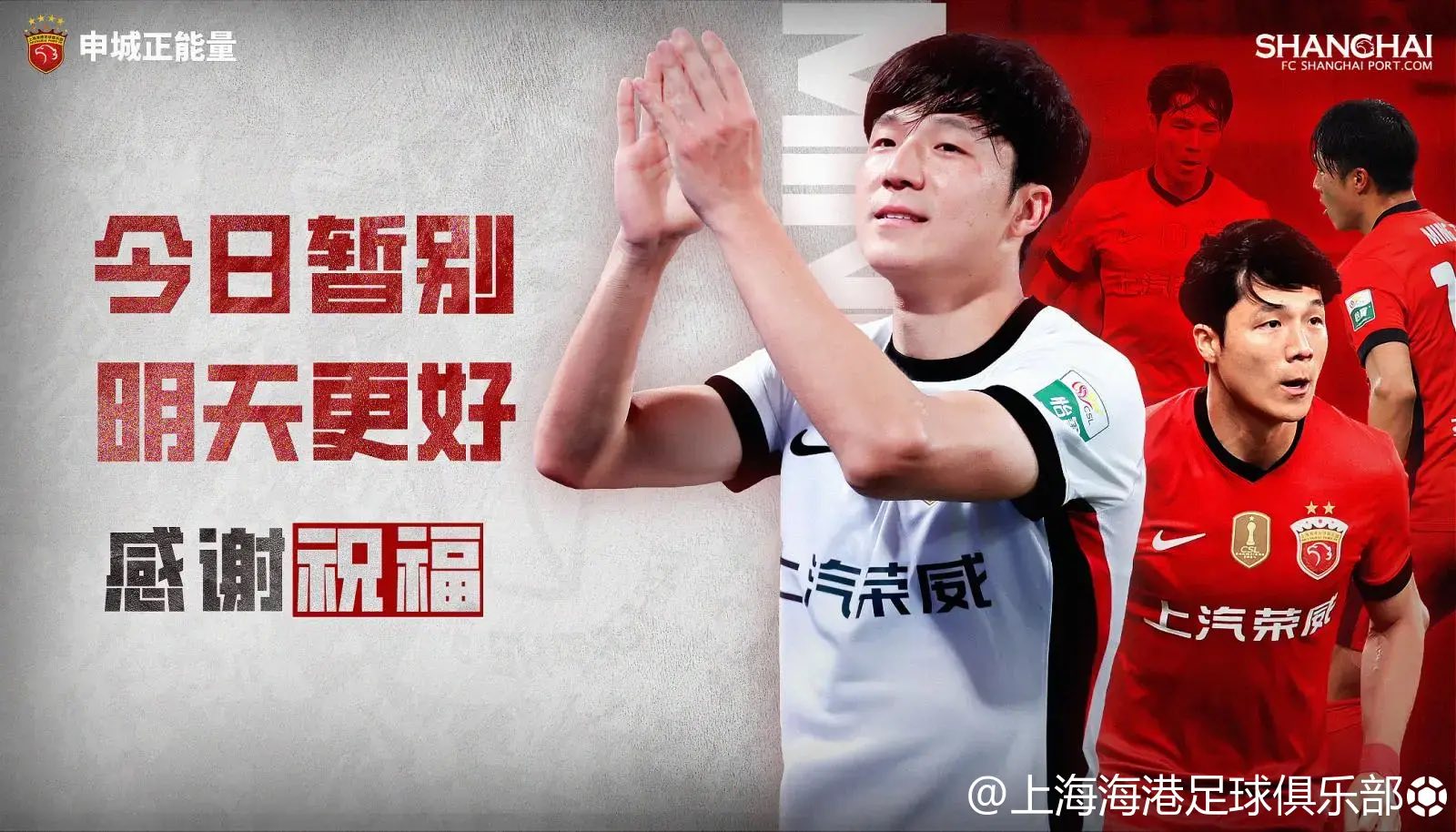 上海海港足球俱乐部感谢明天在队期间的付出,也祝愿他在未来的工作与生活中一切顺利。