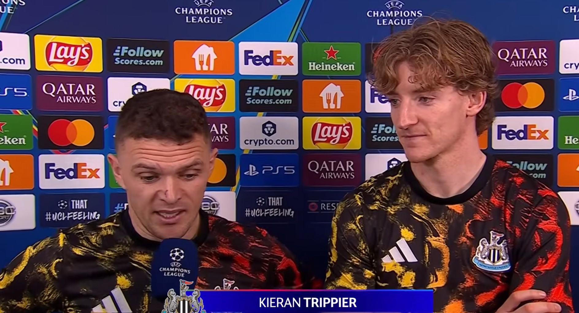 在客场6-1战胜卡拉巴赫的赛后,纽卡后卫特里皮尔和本场比赛上演大四喜的戈登接受了CBS体育的采访。在采访中,他们谈到了因抢罚点球发生争执一事。