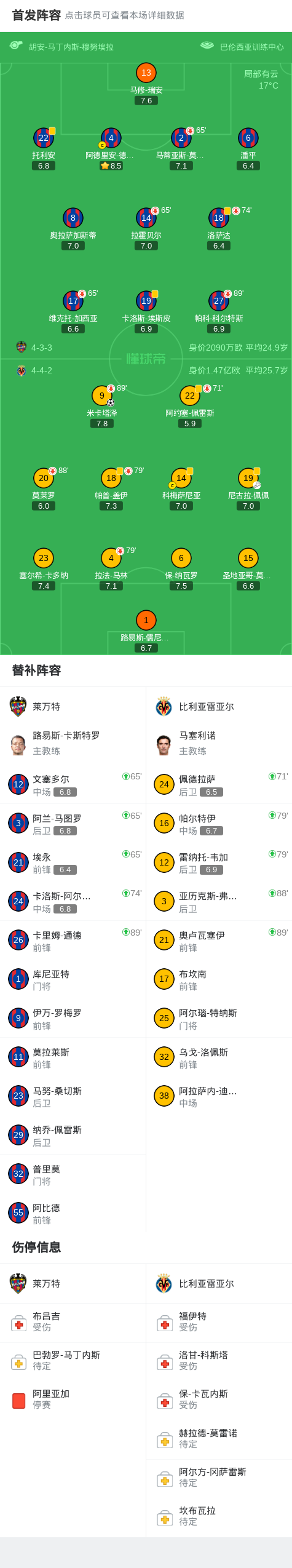 北京时间2月19日西班牙足球甲级联赛 联赛 第16轮,莱万特主场对阵比利亚雷亚尔。比利亚雷亚尔米卡塔泽破门。最终比分莱万特 0–1 比利亚雷亚尔。