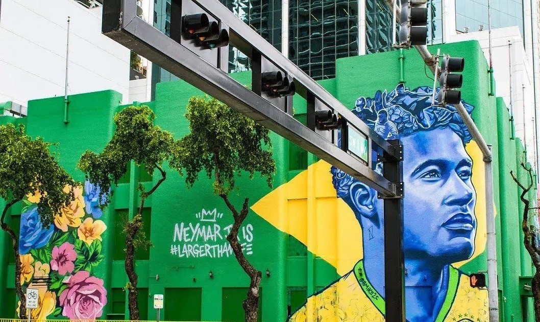 位于巴西城市街头以内马尔为主题的涂鸦墙