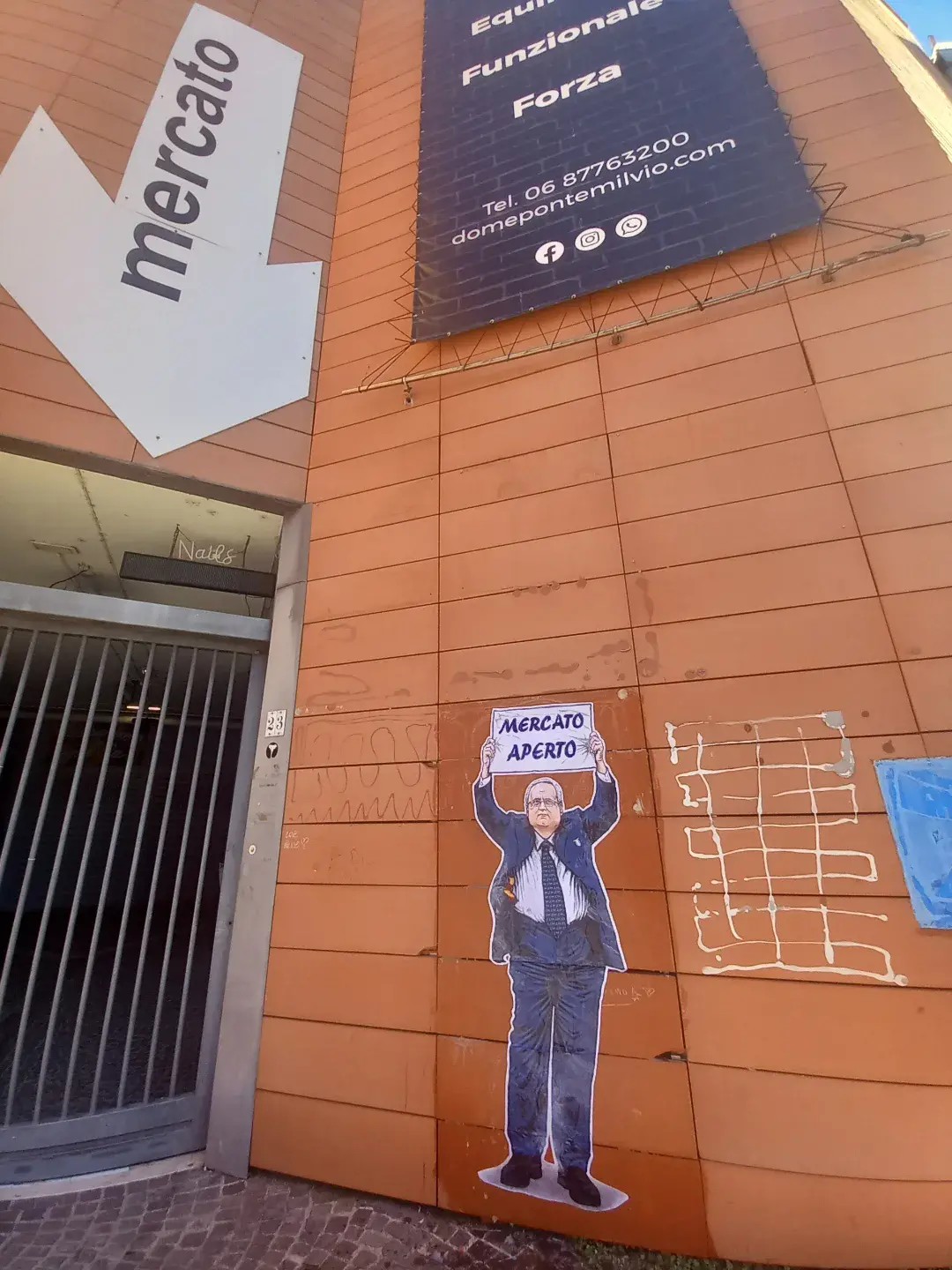 罗马台伯河北岸的Mercato Rionale Di Ponte Milvio市场门口,拉齐奥主席洛蒂托的壁画