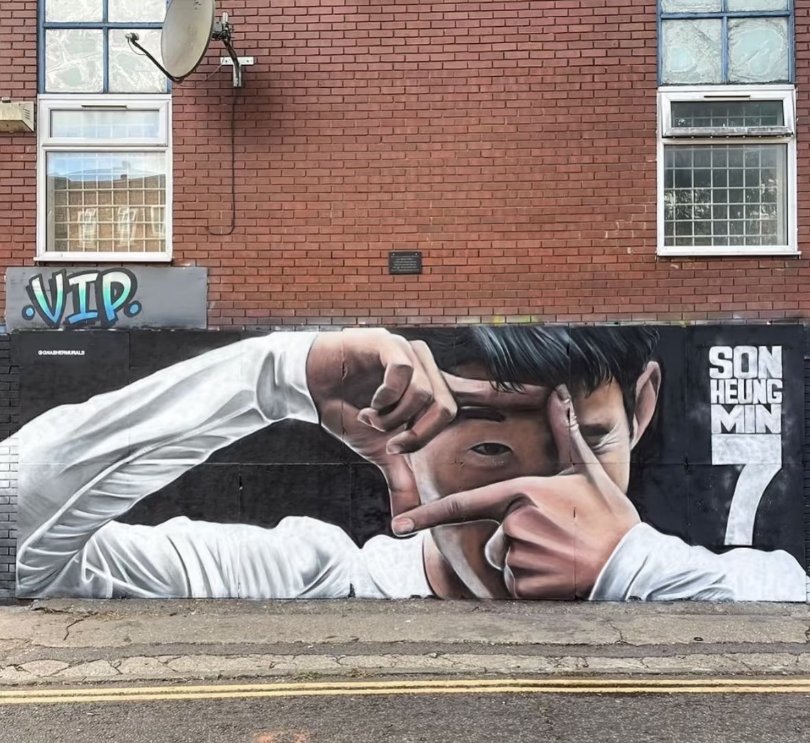 伦敦Stoneleigh街,由涂鸦艺术家Gnasher创作的孙兴慜壁画,展现他英超金靴的荣誉