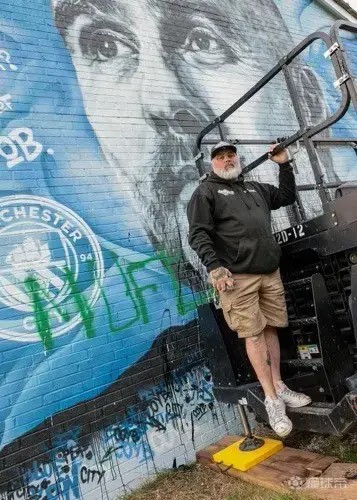 足球涂鸦的核心功能在于它是集体记忆的视觉档案。在利兹联队的埃兰路球场周围,街头艺术家罗伯特·恩迪科特创作了一系列俱乐部传奇球星的巨幅画像。恩迪科特解释自己的动机:“利兹球迷经历过一段无比艰难的时期,我们得画点儿什么,让大家振作起来。”