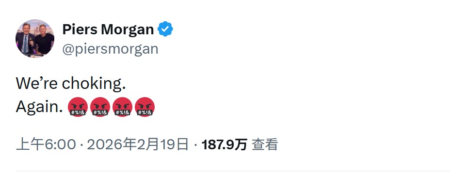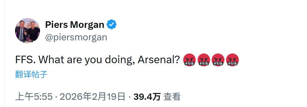 赛后,英国知名媒体人、阿森纳铁杆球迷皮尔斯-摩根在社交媒体上愤怒发声:“够了!你们到底在干什么,阿森纳?”