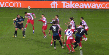 第45+3分钟,卢克曼角球进攻中破门,马竞2-0!