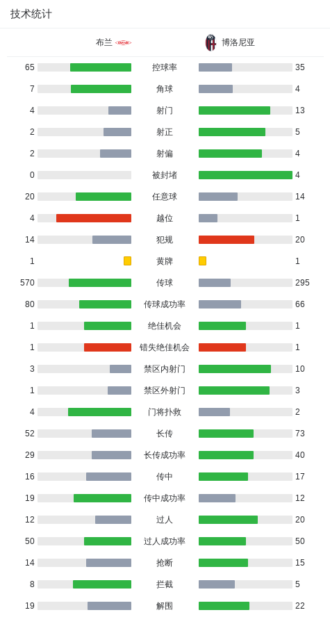 博洛尼亚1-0布兰,圣地亚哥-卡斯特罗打进全场唯一进球